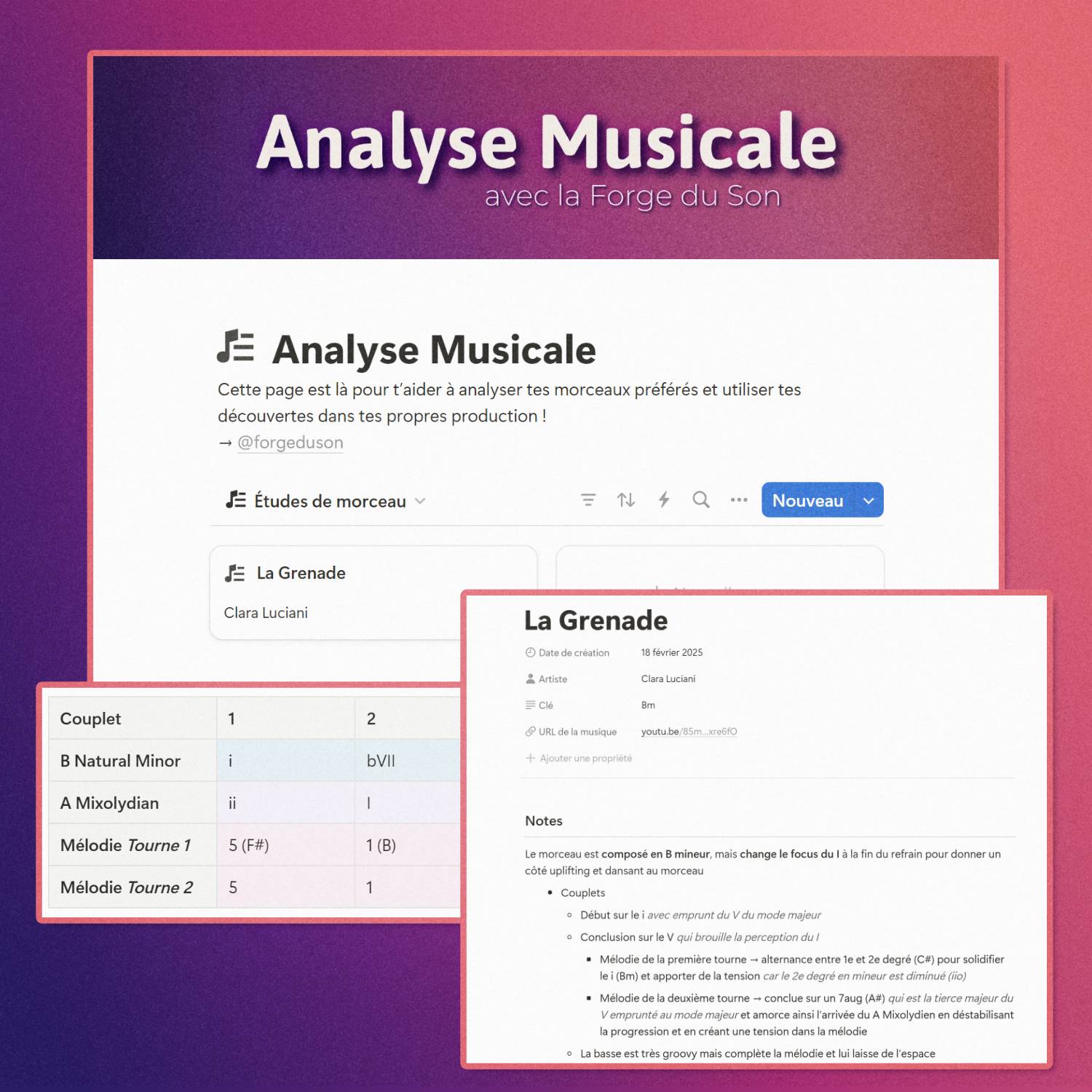 Ce modèle Notion est conçu pour t’aider à analyser et comprendre tes pistes de référence. Tu peux y noter tout ce que tu entends et il peut te servir tout au long de ton processus créatif, de la composition jusqu’au mastering !